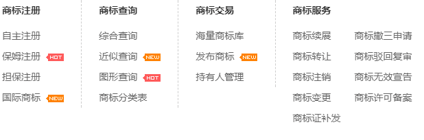 商标续展官费 商标变更 商标时间 商标地址 商标流程 商标费用 白酒商标交易 酒类商标交易 酒水商标转让 商标注册查询 商标注册证书 商标注册官网 商标注册 商标续展 商标售卖网 男装商标转让 商标转让交易 现成商标交易 茶叶商标转让 商标购买平台 企商办 第31类商标 商标分类 商标分类网 商标类别 第24类商标 第39类商标 运输类商标 贮藏类商标 45类商标 第6类商标分类 第37类商标 建筑类商标 修理类商标 第14类商标 珠宝钟表商标 第11类商标 灯具空调商标 材料加工 第40类商标 第1类商标 健身器材商标 第28类商标 酒精饮料商标 第33类商标 第44类商标 医疗类商标 园艺类商标 第16类商标 办公用品商标 厨房洁具商标 第21类商标 皮革皮具商标 第18类商标 第12类商标 运输工具商标 第7类商标 机械设备商标 啤酒饮料商标 第32类商标