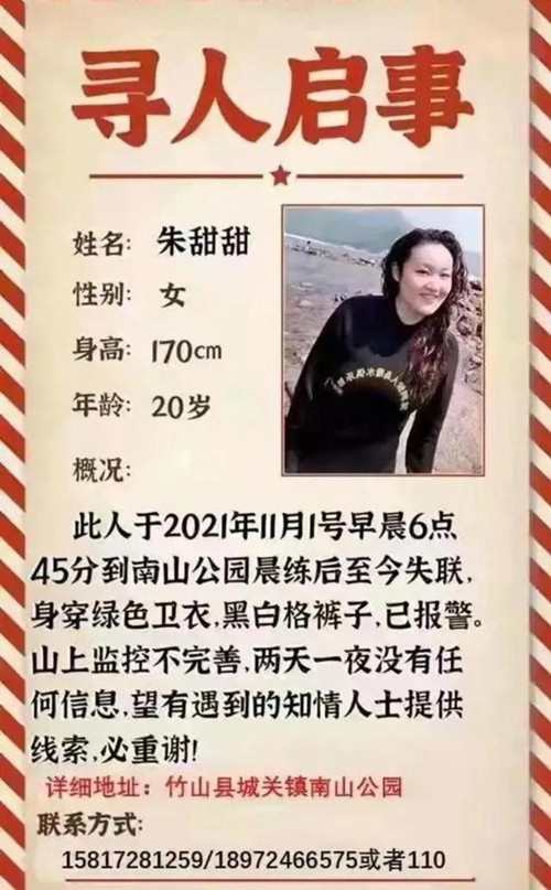2021年11月5日(农历2021年10月1日),20岁女孩晨跑失联曾和父亲通话。