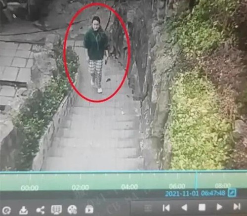 朱甜甜有早晨健身的习惯,根据监控画面显示,11月1日早上6时47分,朱甜甜独自一人出现在十堰市竹山县城关镇南山公园山脚,上身着绿色卫衣,穿黑白格长裤,左手持手机。
