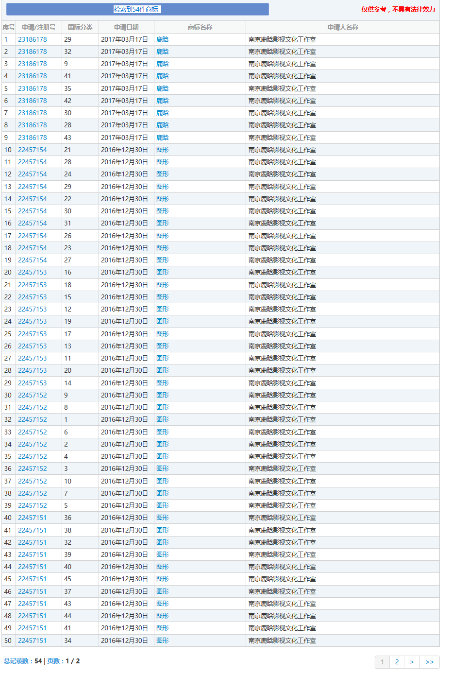 小编查询了这个公司旗下申请的商标,共有54件商标,包括“鹿晗”以及图形商标